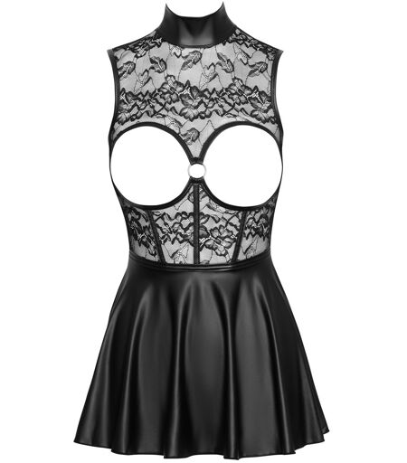 Schwarzes, busenfreies Minikleid von Cottelli PARTY im edlen Material-Mix aus feiner Spitze (Top) und coolem Mattlook (Rock). Rundum weich und elastisch für hohen Tragekomfort. Ärmelloses enges Spitzen-Top mit betonenden Nähten rundum die Taille. Die freien Brüste werden von Mattlook-Paspelierungen sinnlich umrahmt. Dazwischen ein silberfarbener Ring als Eyecatcher. Im Rücken mit schönem tiefem Ausschnitt. Der Stehkragen im Mattlook hat einen Hakenverschluss im Nacken. Das ausgestellte Röckchen schwingt verführerisch um Po und Hüften. 90% Polyester, 10% Elasthan Spitze 90% Polyamid, 10% Elasthan. ...
