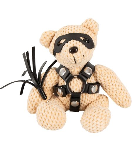 Handzahmer kleiner SM-Teddy von Bad Kitty im typischen Look mit Harness, Augenmaske und Mini-Peitsche. In gehäkelter Optik und superweich im Griff. Am Kopf ein Schlüsselanhänger mit Kettchen und Ring. Die SM-Accessoires sind aus schwarzem stilechten Lederimitat gefertigt. Nur Handwäsche. Teddy 11 cm groß. Polyester. ...