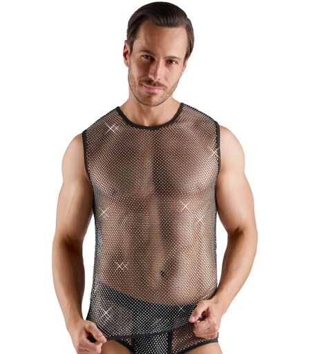 Betonendes, ärmelloses Netz-Shirt von Svenjoyment in aufregender schwarzer Transparenz. Über und über mit funkelnden Glitzersteinchen besetzt. Rundum luftig und weich anschmiegsam für maximalen Tragekomfort. 90% Polyester, 10% Elasthan. ...