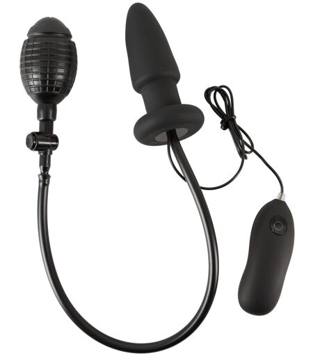 Aufpumpbarer Vibro-Analplug mit 7 abwechslungsreichen Vibrationsmodi und kabelgebundener Fernbedienung. Mit Pumpball für ein einfaches Aufpumpen sowie Ablassventil um die Luft wieder entweichen zu lassen. Batterien bitte extra bestellen: 2 x AAA. Gesamtlänge Plug 12,2 cm, Einführlänge 10,4 cm, Ø 2,8–4 cm. Kabellänge ca. 85 cm. Silikon, PVC, ABS. ...