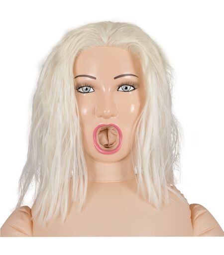 Liebespuppe mit schulterlangem, blondem Haar und blauen Augen. Die Puppe ist lebensgroß und trägt Konfektionsgröße XXS. Die drei Lustöffnungen sind besonders dehnbar und der Masturbator mit Vagina und Anus kann auch herausgenommen werden für den Spaß unterwegs. Das beiliegende Vibrobullet ist mit Multispeed ausgestattet und kann in jeder Öffnung benutzt werden. Inklusive Fußpumpe. Batterien bitte extra bestellen (2 x AA). Gesamtlänge 150 cm, Einführtiefe Mund 14 cm, Einführtiefe Anus/Vagina 12 cm. PVC, TPR. ...
