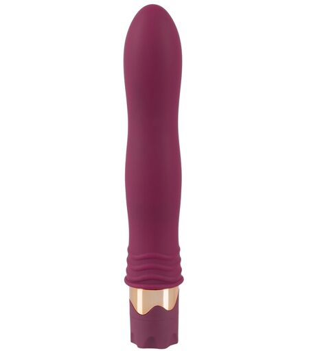 Gewellter, schlanker Vibrator in edlem dunklem Rot mit Reizrillen am Schaftende. Die Vibration ist stufenlos regelbar für zarte bis heftige Reize. Eignet sich für die vaginale, anale oder klitorale Stimulation. Gesamtlänge 19,2 cm, Ø 2,8-3,2 cm. Silikon, PU-Beschichtung, ABS. Batterien: 2 x AA - nicht beiliegend. ...