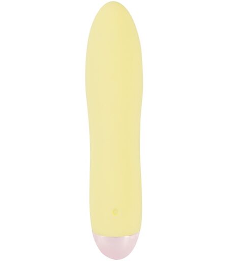 Gelber Minivibrator in schlankem Design. Mit 7 verschiedenen Vibrationsmodi und wiederaufladbar mit beiliegendem USB-Ladekabel. Einfache Handhabung und elegantes Design. Wasserdicht. Gesamtlänge 13,2 cm, Einführlänge 8 cm, Ø 2,5-2,9 cm, Gewicht 63 gr. Silikon, PU-Beschichtung, ABS. ...
