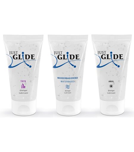 3 Just Glide-Gleitgele auf einmal im Vorteilspack. Just Glide auf Wasserbasis ist zu 100% vegan und eignet sich auch für die Anwendung auf sensibler Haut. Öl- und fettfrei. Abwaschbar. Latexkondomsicher. 3 x 50 ml »Waterbased«, »Toys« und »Anal«. ...