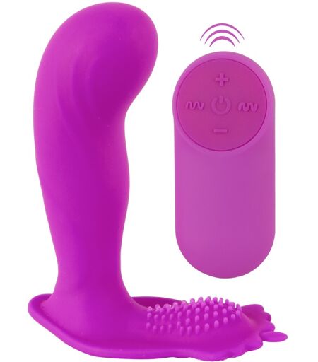 Filigraner Vibrator mit genoppter Auflegefläche und leicht gebogenem Schaft. Der pinke Rundumverwöhner stimuliert zeitgleich Vagina, Klitoris und G-Punkt in 7 Vibrationsmodi mit jeweils 5 Intensitäten. Dazu kann er dezent im Slip getragen werden und ist bequem steuerbar per Fernbedienung. Auch für Prostata und Perineum nutzbar. Wiederaufladbar mit dem beiliegenden USB-Kabel. Inklusive Batterien für die Fernbedienung. Gesamtlänge 11,8 cm, Einführtiefe 10,5 cm, Ø 2-3,8 cm. Silikon mit PU-Beschichtung. ...