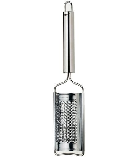 Praktischer Küchenhelfer: die Gewürzreibe RONDO zum Reiben von Zitronenschalen, Hartkäse oder Muskatnuss. Die Gewürzreibe RONDO ist spülmaschinenfest und aus hochwertigem Edelstahl. Mit Aufhängeöse am Griff. ...