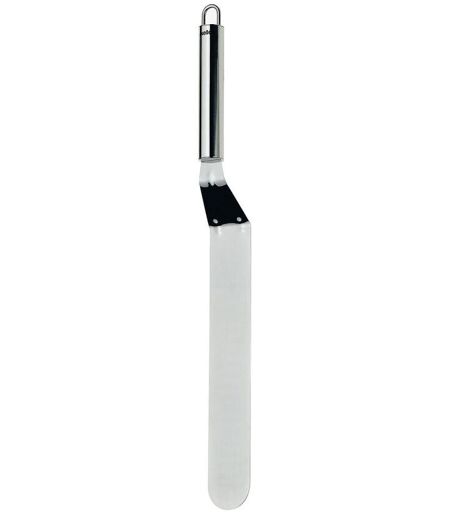 Für Backprofis: Die lange Winkelpalette RONDO zum Bestreichen von Torten und zum Lösen oder Herausheben von Kuchen aus Kuchenblechen. Die Winkelpalette ist 37,5 cm lang, spülmaschinenfest und aus hochwertigem Edelstahl. Mit Aufhängeöse am Griff. ...