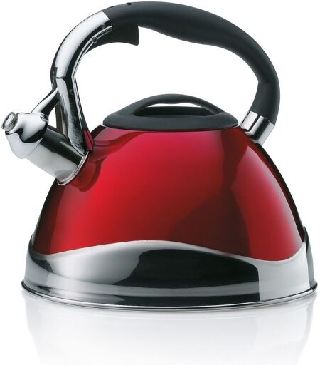 Traditioneller Wasserkessel aus Edelstahl mit Kapselboden, welcher sich für alle Herdarten eignet. Der Griff ist rutschfest und hat den Öffner zum Ausgießen des heißen Wassers praktisch integriert, sodass man nicht mit dem heißen Wasserdampf in Berührung kommt. Ø 22 cm, Fassungsvermögen 3 Liter, Farbvariante: Rot. ...
