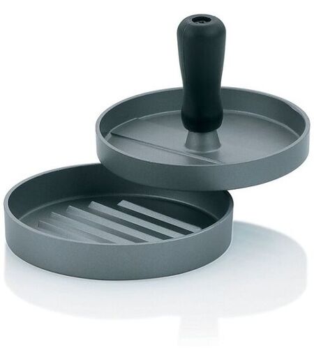 Hamburgerfleisch ganz leicht selbst in die richtige Form bringen, mit der Hamburgerpresse Buffalo. Sie wollen Burger selber machen? Die Hamburgerpresse Buffalo aus Aluguss wird hier zu einem nützlichen Hilfsmittel. Die Antihaftbeschichtung hilft, das Fleisch leicht aus der Form zu lösen, damit es anschließend angebraten werden kann. Ihr Hamburgerfleisch bringen Sie mit der Form auf einen Durchmesser von 12 cm. ...