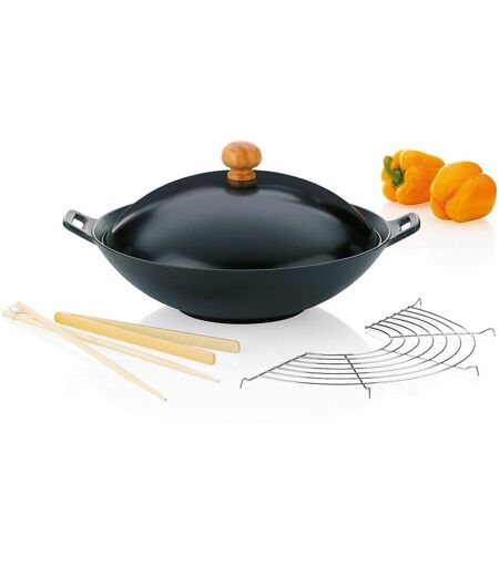 Für die Asia-Küche zu Hause: das 5-tlg. Wokset ASIA. Zum Wokset gehören: 1 Wok aus Gusseisen, Durchmesser 36 cm, 1 Deckel aus Metall, 1 Dünstrost aus Edelstahl, 1 Paar Stäbchen, 1 Holzzange. Das Wokset ist für Gas, Glaskeramik, E-Herd geeignet. ...