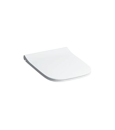 Geberit Smyle Square WC-Sitz Artikelnummer 500240011 weiss Scharniere Messing verchromt Befestigung von oben mit Absenkautomatik passend zu WC 500208011 oder 500208018 - bitte separat bestellen schmales Design Sandwichform ...