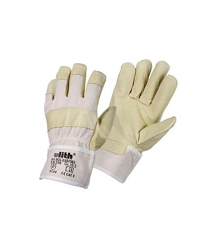 Die Ulith Arbeitshandschuhe für Baustelle, Handwerk, Industrie, Freizeit/OutdoorWer bei der Arbeit beherzt anpacken muss weiß: Der richtige Handschuh macht den entscheidenden Unterschied. Diese Arbeitshandschuhe von Ulith sind ein echter Klassiker unter den Arbeitshandschuhen. Die robuste Verarbeitung sorgt für eine gute Griffsicherheit. So können Sie bei trockenen Werkstücken fest zupacken. Dank des atmungsaktiven Handrückens aus 100% Baumwolle sind sie auch bei längeren Arbeiten angenehm zu tragen. Die Fingerkuppen, Handgelenke und Knöchel werden von dem kräftigen Vollleder bestens geschützt. Bei einer Bestellung der Arbeitshandschuhe mit braunem Leder kann es vorkommen, dass die Farbe abweicht und Arbeitshandschuhe in grau geliefert werden.Bei diesen Ulith Arbeitshandschuhen in Einheitsgröße muss man einfach zupacken: Bestellen Sie sie am besten direkt in unserem Online-Shop, und dem beherzten Arbeitseinsatz steht nichts mehr im Wege. ...