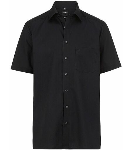 Herren Hemd aus Baumwolle Angenehm zu tragen Kentkragen Kurzarm Farbbezeichnung: schwarz Brusttasche mit Logo Stickerei Gerade Passform Material: 100% Baumwolle Die Marke OLYMP ist Mitglied der Fair Wear Foundation. ...