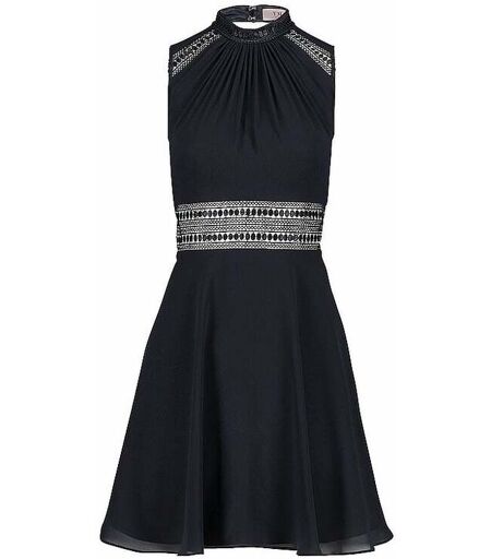Passform: Schwingend Farbe: Night Gesamtlänge: 96 cm Länge ab Taille: 54 cm Feinmaterial: Chiffon Ärmel: Ärmellos Ausschnitt: Raffung/Kräuselung Kragen: Stehkragen Längeninfo: Knieumspielend Verschluss: Reißverschluss Muster: Unifarben Material: 100% Polyester Futter: 100% Polyester ...