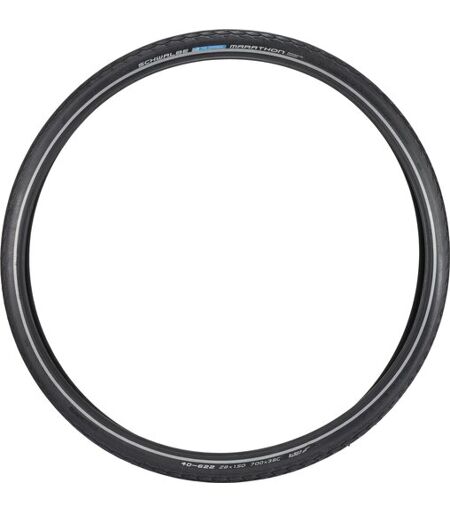 Der Fahrradreifen» Marathon 700× 38C« bietet perfekte Fahreigenschaften für Touren- und Rennräder sowie für E-Bikes mit einer Maximalgeschwindigkeit von bis zu 50 km/h. Der Drahtreifen besitzt einen leistungsstarken Level 5-Pannenschutz, eine 3 mm starke GREENGUARD-Einlage aus hochelastischem Naturkautschuk sowie eine Dynamo-Riffelung. Seine Reflektoren machen den Ersatzreifen überdies zu einem optimalen Partner für Fahrten bei dunkleren Lichtverhältnissen. ...