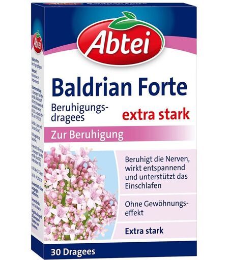 Anwendungsgebiet von Abtei Baldrian forte BeruhigungsdrageesAbtei Baldrian forte Beruhigungsdragees sind ein pflanzliches Arzneimittel, das bei leichter nervöser Anspannung und bei Schlafstörungen angewendet werden kann.Hohe Belastungen im privaten oder beruflichen Alltag können zu Überforderung, nervöser Anspannung oder Schlafstörungen führen. Abtei Baldrian forte Beruhigungsdragees schaffen Abhilfe, sie wirken entspannend und beruhigen die Nerven. Für Ruhe und Gelassenheit am Tag und erholsamen Schlaf in der Nacht.Wirkstoffe / Inhaltsstoffe / ZutatenInhaltsstoffe von Abtei Baldrian forte Beruhigungsdragees:Der Wirkstoff ist: Baldrianwurzel-TrockenextraktEine überzogene Tablette enthält: 450 mg Trockenextrakt aus Baldrianwurzel (3-6:1), Auszugsmittel Ethanol 70 % (V/V).Die sonstigen Bestandteile sind: Arabisches Gummi, Calciumcarbonat E 170, gebleichtes Wachs, Croscarmellose-Natrium, Carnaubawachs, Cellulose, Glucose-Sirup Trockensubstanz, Sucrose (Zucker), entwachster und gebleichter Schellack, hochdisperses Siliciumdioxid, Stearinsäure, Talkum, Tragant, Titandioxid E 171.GegenanzeigenBei bekannter Überempfindlichkeit gegenüber einem der oben genannten Inhaltsstoffe sollte dieses Produkt nicht angewendet werden.DosierungAnwendungsempfehlung von Abtei Baldrian forte Beruhigungsdragees:Für Erwachsene, Kinder über 12 Jahre und Senioren zur Anwendung bei: leichter nervöser Anspannung: bis zu 3-mal täglich 1 überzogene Tablette (= ca. 2 g Baldrianwurzel).Schlafstörungen: 1/2 bis 1 Stunde vor dem Schlafengehen 1 überzogene Tablette. Falls notwendig kann zusätzlich 1 überzogene Tablette bereits früher im Verlauf des Abends eingenommen werden. Um einen optimalen Behandlungserfolg zu erzielen, wird empfohlen, eine kontinuierliche Anwendung über 2-4 Wochen einzuhalten. Wenn die Symptome sich nach zweiwöchiger kontinuierlicher Anwendung des Arzneimittels nicht bessern oder gar verschlimmern, sollte ein Arzt oder Apotheker aufgesucht wer ...