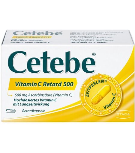 Cetebe Vitamin C Retard 500 Kapseln ist ein freiverkäufliches Arzneimittel. Die angegebene empfohlene tägliche Verzehrmenge darf nicht überschritten werden. Die Cetebe® Vitamin C Retardkapseln sind unzerkaut mit ausreichend Flüssigkeit einzunehmen.