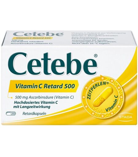 Cetebe Vitamin C Retard 500 Kapseln ist ein freiverkäufliches Arzneimittel. Die angegebene empfohlene tägliche Verzehrmenge darf nicht überschritten werden. Die Cetebe® Vitamin C Retardkapseln sind unzerkaut mit ausreichend Flüssigkeit einzunehmen.