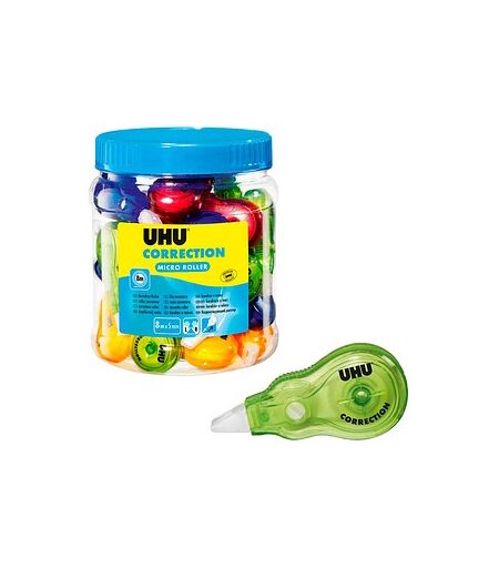 Zeilengenau und schnell: Korrekturroller Micro im praktischen PackMit einem Korrekturroller lassen sich Fehler schnell, sauber und zeilengenau korrigieren. Der Korrekturroller Micro von UHU ist dank seiner kleinen Bauweise nicht nur besonders handlich, sondern auch ideal für die Mitnahme im Federmäppchen geeignet. So haben Sie stets die Möglichkeit Fehler auszubessern – egal wo Sie sind.Mit diesem Pack stellen Sie sich einen Vorrat von 25 Micro Korrekturrollern zur Seite. Sie kommen in einer praktischen Aufbewahrung zu Ihnen.Schnelle Korrektur – keine TrockenzeitDie farbsortierten Korrekturroller kommen mit den Gehäusefarben blau, pink, grün und gelb zu Ihnen. Das weiße Korrekturband hat eine Breite von 5,0 mm und insgesamt eine Länge von 8,0 m. Das Material muss nicht trocknen, ist lösungsmittelfrei und sofort überschreibbar. Sie können sowohl handgeschriebene als auch gedruckte Fehler auf sehr vielen verschiedenen Papiersorten ausbessern.Zögern Sie nicht und bestellen Sie Ihren Micro Korrekturroller-Vorrat von UHU jetzt hier in unserem Online-Shop. ...