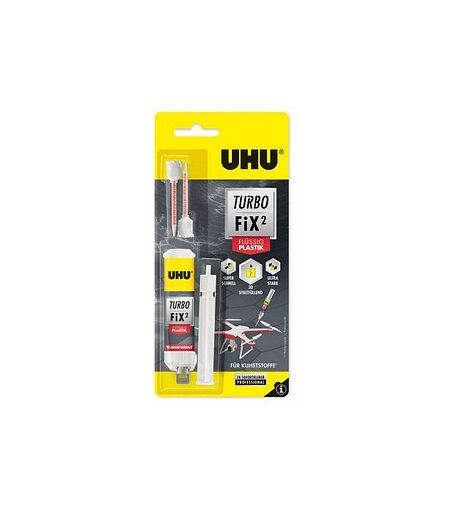 Turbo Fix Plastik 2 Komponenten-Kleber: der Profi für ReparaturarbeitenSowohl drinnen als auch draußen gibt es mal etwas zu reparieren. Hier ist der Turbo Fix Plastik Flüssigkleber von UHU eine große Hilfe. Der extrastarke 2-Komponenten-Reparaturkleber auf Cyanacrylat-Basis besitzt hohe spaltfüllende Eigenschaften und klebt selbst zwischen zwei unterschiedlichen Oberflächen. Dank seiner Gelkonsistenz ist der Klebstoff für Anwendungen alle Ausrichtungen prima geeignet.Klebt in nur wenigen SekundenBefestigen oder reparieren Sie mit dem Turbo Fix Plastik Materialien wie Glas, Kunststoff, Metall, Stein, Keramik, PVC, ABS, Gummi – sowohl miteinander als auch in Kombination. Dafür benötigen Sie nur ca. 30 Sekunden, abhängig von Materialien, Feuchtigkeit und Temperatur.Hier die Pluspunkte in Kurzform:SuperschnellExtrem starkSpaltfüllend: unbegrenztGelkonsistenzLackier-, bohr- und sandstrahlbarSchlagfestTemperaturbeständig: -40° C/+80 °CWasserbeständigLösungsmittelfreiPräziser und sauberer AuftragTransparentHier im Online-Shop können Sie den Turbo Fix Plastik 2 Komponenten-Kleber von UHU mit nur wenigen Klicks bestellen.Gefahrenhinweise:- Verursacht Hautreizungen.- Verursacht schwere Augenreizung.- Kann die Atemwege reizen.Sicherheitshinweise:- Ist ärztlicher Rat erforderlich, Verpackung oder Kennzeichnungsetikett bereithalten.- Darf nicht in die Hände von Kindern gelangen.- Einatmen von Dampf vermeiden.- Schutzhandschuhe tragen.- BEI KONTAKT MIT DEN AUGEN: Einige Minuten lang behutsam mit Wasser spülen. Eventuell vorhandene Kontaktlinsen nach Möglichkeit entfernen. Weiter spülen.- Entsorgung des Inhalts / des Behälters gemäß den örtlichen / regionalen / nationalen/ internationalen Vorschriften.Signalwort: AchtungGefahrenklasse/-kategorie:- Akute Toxizität – Kategorie 4- Hautreizende/-ätzende Wirkung – Kategorie 2- Schwere Augenschädigung/Augenreizung – Kategorie 1- Schwere Augenschädigung/Augenreizung – Kategorie 2- Sensibilisierung der Haut – Kategorie 1- Keimzellmutagenität – Kategorie 2- Karzinogenität – Kategorie 2- Reproduktionstoxizität – Kategorie 2- Spezifische Zielorgan-Toxizität (einmalige Exposition) – Kategorie 3- Gewässergefährdend - akut gewässergefährdend – Kategorie 1 ...