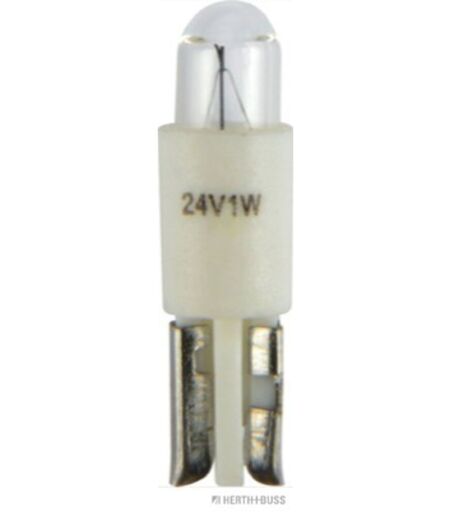 Art der Glühlampe: W1W. Hersteller: HERTH+BUSS ELPARTS. Herstellernummer: 89901231. Index: 89901231. Lampentyp: Sekundär. Nennleistung [W]: 1. Spannung [V]: 24. Steckdosentyp: W2X4,6D. ...