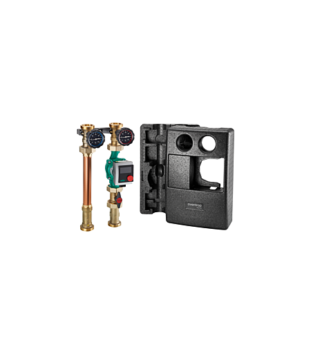 Oventrop Regumat Kessel-Anbindesystem 1355076ungemischter Heizkreismit universellermodular aufgebauter Wärmedämmungbestehend aus Absperreinrichtung mit 2 Kugelhähnen und 2 Thermometer (ohne Überströmvorrichtung)WandhalterungFlanschrohr mit SperrventilPumpenkugelhahn vor der PumpeDistanzstück und Wärmedämmung ...