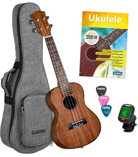 Hage Musikverlag Concert Ukulele Mahogany Set (incl. 4 languages Method (DE/EN/FR/ES), Bag padded, 3 Picks, Tuner)**