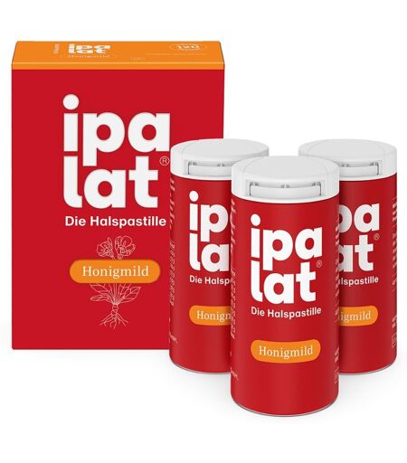Anwendungsgebiet von Ipalat® Halspastillen HonigmildIpalat® Halspastillen Honigmild: Naturkraft in hohen Dosen*Ipalat® Halspastillen Honigmild gibt es seit 1937 in Apotheken. Sie ist bewährt bei Heiserkeit und Hustenreiz, rauem Hals und Halskratzen sowie strapazierter Stimme. Das in Ipalat® Halspastillen Honigmild enthaltene Menthol gibt zusätzlich ein Gefühl frischen und befreiten Atmens.Wertvolle Extrakte aus der Primelwurzel wirken wohltuend und befreiend. Pflanzliche Naturkraft ist das Mittel gegen den rauen Ton.Ipalat® Halspastillen Honigmild sind lactose- und glutenfrei und sehr gut verträglich.Wenn Sie unter einer beeinträchtigten Stimme leiden – etwa durch Heiserkeit und/oder Hustenreiz –, können Pflanzenextrakte unterstützend wirken und Ihre Beschwerden lindern. Besonders praktisch sind Halspastillen mit pflanzlichen Extrakten, da sie einfach anzuwenden sind.Die Halspastillen enthalten Extrakte aus der Primelwurzel und befinden sich in der bewährten hohen Dose* mit Plopp-Verschluss. Naturkraft in hohen Dosen – sozusagen.*Dosenhöhe = 7,5 cmHäufige Fragen & AntwortenSind Ipalat® Halspastillen Honigmild für Diabetiker:innen geeignet?Prinzipiell sind Ipalat® Halspastillen Honigmild für Diabetiker:innen geeignet. Bei der Variante Classic entspricht 1 Pastille 0,05 BE (Broteinheiten), bei ipalat® Zuckerfrei entspricht 1 Pastille 0,03 BE und bei Honigmild entspricht 1 Pastille 0,02 BE.Sind Ipalat® Halspastillen Honigmild für Kinder geeignet?Grundsätzlich sind ipalat® Halspastillen für Kinder geeignet. Allerdings könnten Kinder die Sorten mit Menthol als zu intensiv im Geschmack empfinden. Für einen sanften Geschmack ist daher Ipalat® Halspastillen Honigmild besonders für Kinder (ab ca. 4 Jahren) zu empfehlen. Sie sollten nach Ihrer Einschätzung als Elternteil darauf achten, dass Ihr Kind die Pastille lutschen kann, um ein Verschlucken zu vermeiden.Sind Ipalat® Halspastillen Honigmild für Allergik ...