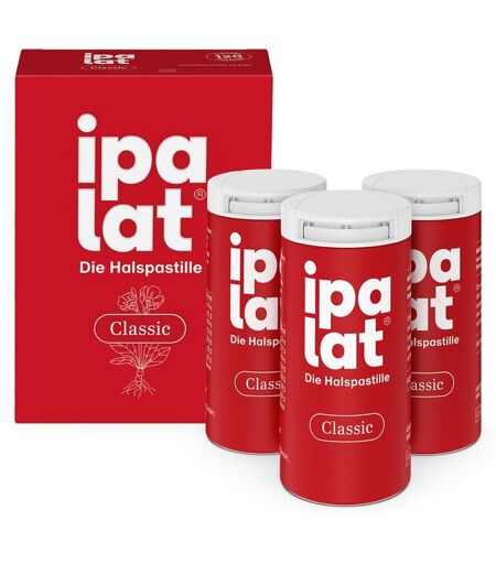 Anwendungsgebiet von Ipalat® Halspastillen classicIpalat® Halspastillen classic: Naturkraft in hohen Dosen*Ipalat® Halspastillen classic gibt es seit 1937 in Apotheken. Sie ist bewährt bei Heiserkeit und Hustenreiz, rauem Hals und Halskratzen sowie strapazierter Stimme. Das in ipalat® Classic enthaltene Menthol gibt zusätzlich ein Gefühl frischen und befreiten Atmens.Wertvolle Extrakte aus der Primelwurzel wirken wohltuend und befreiend. Pflanzliche Naturkraft ist das Mittel gegen den rauen Ton.Ipalat® Halspastillen classic sind lactose- und glutenfrei und sehr gut verträglich.Wenn Sie unter einer beeinträchtigten Stimme leiden – etwa durch Heiserkeit und/oder Hustenreiz –, können Pflanzenextrakte unterstützend wirken und Ihre Beschwerden lindern. Besonders praktisch sind Halspastillen mit pflanzlichen Extrakten, da sie einfach anzuwenden sind.Die Halspastillen enthalten Extrakte aus der Primelwurzel und befinden sich in der bewährten hohen Dose* mit Plopp-Verschluss. Naturkraft in hohen Dosen – sozusagen.*Dosenhöhe = 7,5 cmHäufige Fragen & AntwortenSind Ipalat® Halspastillen classic für Diabetiker:innen geeignet?Prinzipiell sind Ipalat® Halspastillen classic für Diabetiker:innen geeignet. Bei der Variante Classic entspricht 1 Pastille 0,05 BE (Broteinheiten), bei ipalat® Zuckerfrei entspricht 1 Pastille 0,03 BE und bei Honigmild entspricht 1 Pastille 0,02 BE.Sind Ipalat® Halspastillen classic für Kinder geeignet?Grundsätzlich sind Ipalat® Halspastillen classic für Kinder geeignet. Allerdings könnten Kinder die Sorten mit Menthol als zu intensiv im Geschmack empfinden. Für einen sanften Geschmack ist daher ipalat® Honigmild besonders für Kinder (ab ca. 4 Jahren) zu empfehlen. Sie sollten nach Ihrer Einschätzung als Elternteil darauf achten, dass Ihr Kind die Pastille lutschen kann, um ein Verschlucken zu vermeiden.Sind Ipalat® Halspastillen classic für Allergiker geeignet?Ipalat® Halspastillen ...