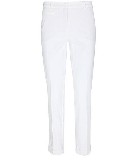 Damen Chinos aus Baumwoll-Stretch Mittlere Leibhöhe Knopf- und Reißverschluss Seitliche Eingrifftaschen Münztasche Bügelfalten Zulaufendes Bein Verkürzte Länge Unifarben Farbbezeichnung: Pure White Material: 97% Baumwolle, 3% Elasthan ...