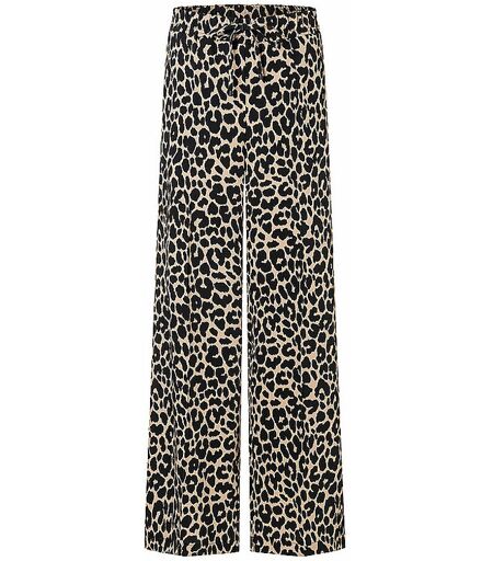 Damen Hose aus Polyester Mittlere Leibhöhe Elastischer Bund mit Tunellzug Seitliche Eingrifftaschen Weiter Beinverlauf Allover-Animalprint Farbbezeichnung: Camel Black Leo Material: 100% Polyester ...