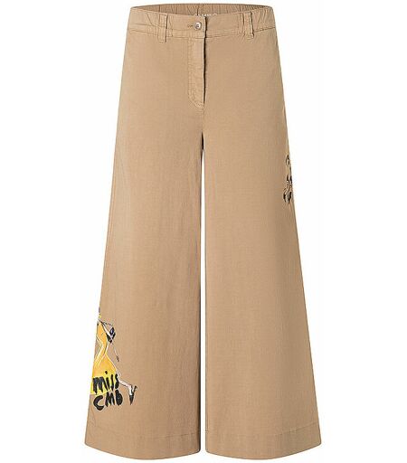 Damen Marlenehose Hohe Leibhöhe Schließt mit Knopf und Reißverschluss Weites, gerades Bein Modischer Print seitlich Farbbezeichnung: Tabacco Sand Material: 97% Baumwolle, 3% Elasthan ...