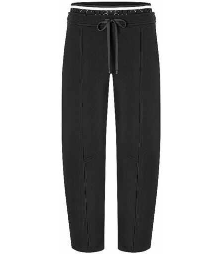 Damen Hose aus bequemem Stretch-Material Mittlere Leibhöhe Elastischer Doppelbund mit Tunnelzug Seitliche Eingrifftaschen Paspelierte Gesäßtaschen Abgesteppte Bügelfalten auf der Vorderseite Verkürzte Länge Farbbezeichnung: Black Material: 95% Polyamid, 5% Elasthan ...