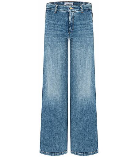 Wide Leg Denim ALEK in voller Länge. Die weite Jeans in Blau mit weichem Griff und lässiger A-Shape Form ist ein modisches Highlight der aktuellen CAMBIO Kollektion und zaubert eine feminine fließende Silhouette. Die Jeans bildet durch die Fransennaht an der Seite eine optimale Basis für Fashionlooks von casual bis elegant und lässt sich daher vielfältig kombinieren. Stretch sorgt für zusätzlichen Komfort. Damen Jeans aus Denim Weites Bein Farbbezeichnung: Lefthand Medium Used Material: 92 % Baumwolle, 6 % Elastomultiester, 2 % Elasthan ...