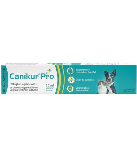 Anwendungsgebiet von Canikur Pro Paste Hund & Katze zur Unterstützung der DarmfloraCanikur Pro Paste Hund & Katze zur Unterstützung der Darmflora ist ein Diät-Ergänzungsfuttermittel für Hunde und Katzen zur Stabilisierung der physiologischen Verdauung.Als praktische Pasteleicht zu fütternschmeckt Hunden und Katzen gutpasst in jede Reiseapotheke3-fach-kombiniertProbiotikum (E. faecium): dient dem Schutz der Darmwand und Stärkung des ImmunsystemsPräbiotikum (Bio-Mos®-C): fördert das Wachstum und die Aktivität bestimmter, für die Darmflora günstiger BakterienartenAdsorbens (Bentonit): bindet durch seine Oberflächenstruktur Giftstoffe und Viren/Bakterien, die sich negativ auf die Darmflora auswirken könnenCanikur®Pro – zur Unterstützung der natürlichen Darmflora – Diät-Ergänzungsfuttermittel für Hunde und KatzenCanikur®Pro ist ein pro- und präbiotisches Diät-Ergänzungsfuttermittel für Hunde und Katzen zur Regulation der physiologischen Verdauung. Es kann begleitend während und nach einer Durchfall-Therapie zur Unterstützung der Darmflora gegeben werden.Durchfall gehört leider zu den häufigsten Gründen, aus denen wir mit unseren Haustieren tierärztliche Hilfe suchen. Hat unser Hund oder unsere Katze Durchfall, wird gleichzeitig auch die Darmflora angegriffen. Umgekehrt führt eine veränderte Darmflora oftmals zu Durchfall. Ein Ungleichgewicht der Darmflora kann durch die Gabe eines Synbiotikums wieder ausbalanciert werden.Die häufigsten Fragen und Antworten rund um Canikur®ProWarum hat mein Hund/meine Katze Durchfall?Durchfall ist ein Symptom, für das es viele Ursachen gibt. Allen gemein ist, dass sie zu vermehrtem Wasserverlust über den Kot führen. Die Ursachen können harmlos, aber auch schwerwiegend sein.Bei Durchfall sollten Sie Ihr Tier immer aufmerksam beobachten und gegebenenfalls diätetisch unterstützen und ggf. den Tierarzt kontaktieren. Canikur®Pro bietet sich als natürliches Diät ...