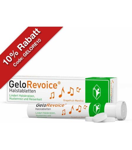 In zahlreichen Berufen ist die Stimme das wichtigste Arbeitsinstrument. Sänger und Vielsprecher wie Lehrer, Verkäufer oder Erzieher bleiben im Akutfall mit GeloRevoice Halstabletten Grapefruit-Menthol Lutschtabletten besser gut bei Stimme. Die Lutschtabletten sind auch vorbeugend und im Rahmen einer Langzeittherapie geeignet.