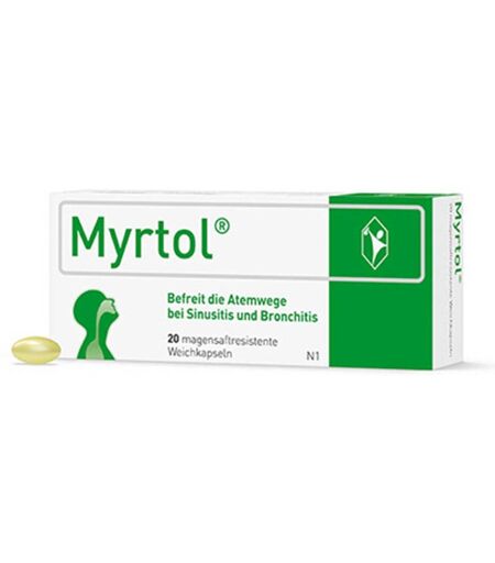 Wirkstoffe / Inhaltsstoffe / ZutatenMyrtol der pflanzliche Schleimlöser enthält:Der arzneilich wirksame Bestandteil ist: 1 magensaftresistente Weichkapsel enthält 120 mg Destillat aus einer