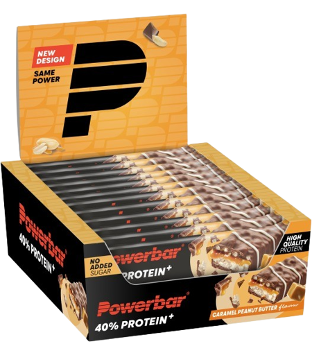 POWERBAR 40% PROTEIN+ CRISP RIEGEL Caramel Peanut Butter 1 Box (12 Stück)