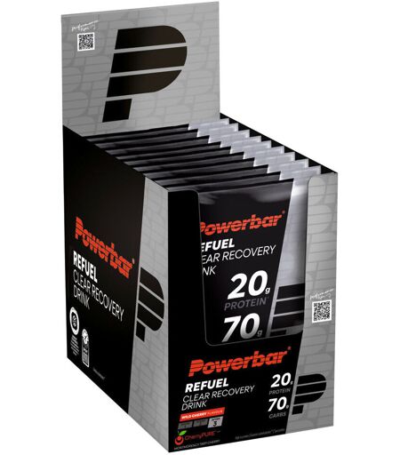 REFUEL CLEAR RECOVERY DRINK Bringe deine Regeneration auf ein neues Level – mit dem erfrischenden Recovery Drink der Black Line. PRODUKTBESCHREIBUNG Entfessle deine Power mit den Powerbar Produkten der Black Line: Der Powerbar Refuel Clear Recovery Drink enthält 70 g Kohlenhydrate (aus Glukose- und Fruktose-Quellen), sowie 20 g Protein (aus Molkeneiweiß-Isolat) pro Portion. Mit dieser Zusammensetzung ist er ein wesentlicher Schlüssel für die Regeneration nach intensiven Trainingseinheiten und Wettkämpfen. Die Verwendung von Clear Whey sorgt für einen angenehm leichten Geschmack. Der erfrischende Clear Recovery Drink der Black Line ist mit seiner Kombination aus Kohlenhydraten und Proteinen somit eine optimale Wahl, um die Regeneration zu unterstützen. Enthält Kohlenhydrate: 70 g pro Portion Kohlenhydrate tragen nach sehr intensiver und/oder sehr langer körperlicher Betätigung, die zur Erschöpfung der Muskulatur und der Glykogenvorräte in der Skelettmuskulatur führt, zur Wiederherstellung der normalen Muskelfunktion (Kontraktion) bei. * Hoher Proteingehalt: Enthält 20 g Protein pro Portion Für Vegetarier geeignet Entwickelt für den Gebrauch nach intensiver sportlicher Belastung CherryPure® ist ein hochkonzentrierte Sauerkirschpulver aus 100% Montmorency-Sauerkirschen, die von Natur aus reich an Anthozyanen und Polyphenolen sind. Alle Powerbar Black Line Produkte sind ebenfalls auf der Kölner Liste® aufgeführt und von Informed Sport (LGC) auf verbotene Substanzen geprüft und zertifiziert. Dadurch bieten wir den Athleten Sicherheit und Vertrauen. * Für diese positive Wirkung sollten insgesamt 4 g Kohlenhydrate pro kg Körpergewicht aus allen Quellen, in Form von mehreren Portionen in den ersten 4 Stunden und spätestens 6 Stunden nach Ende der genannten körperlichen Betätigung verzehrt werden. VERZEHREMPFEHLUNG 1 Portion direkt nach hochintensiver sportlicher Belastung. Max. 3 Portionen pro Tag. Zubereitung: Beutelinhalt (97 g Pulver ? 1 Portion) in 400 ml Wasser einrühren und gut vermischen. Im Rahmen einer abwechslungsreichen und ausgewogenen Ernährung und einer gesunden Lebensweise. ...