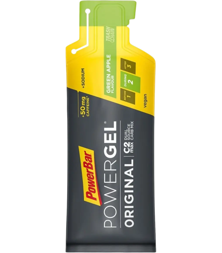 Du bist auf der Suche nach bewährten Kohlenhydrat-Gelen, auf die auch Profis unterschiedlicher Sportarten schon seit 1996 vertrauen? Dann sollte deine Wahl auf PowerBar PowerGel® Original fallen. Das Original der PowerGele® versorgt dich mit C2MAX in Kombination mit Natrium. C2MAX ist ein Kohlenhydratmix, welcher ein wissenschaftlich entwickeltes 2:1 Verhältnis von Glukose- und Fruktosequellen enthält. Bewährte Funktionalität mit C2MAX Dual Source Carb Mix und ca. 200 mg Natrium pro Beutel Vegan Innovative Verpackung: leicht zu öffnen und verhindert zusätzlichen Abfall durch „Trash Chain“ Geschmacksrichtungen Black Currant und Green Apple: enthalten zusätzlich 50 mg Koffein proBeutel Geschmacksrichtungen Espresso: enthält zusätzlich 53 mg Koffein pro Beutel Geschmacksrichtung Salty Peanut: auch für Erdnussallergiker geeignet Alle PowerBar Produkte (ausgenommen: Electrolyte Drink Konzentrate) sind auf der Kölner Liste® aufgeführt, dadurch bieten wir den Athleten noch mehr Sicherheit und Vertrauen. Inhalt: 41g (pro Einzel VE!) Verzehrempfehlung: Geschmacksrichtung ohne Koffein: 1-4 Beutel/ Tag. Geschmacksrichtung mit Koffein: 1-3 Beutel/ Tag. Nimm nach Bedarf einen Beutel mit Wasser in regelmäßigen Abständen während der Belastung. Geschmacksrichtung mit Koffein: Erhöhter Koffeingehalt. Für Kinder und schwangere oder stillende Frauen nicht empfohlen. (Green Apple & Black Currant: 122 mg/100g; 50 mg/ Beutel. Espresso: 130 mg/100g; 53 mg/ Beutel.) ...