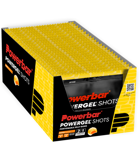Warum Energie nicht auch mal individuell portionieren. Mit den PowerBar® PowerGel® Shots bekommst du Abwechslung zu klassischen Kohlenhydratriegeln und Gels. Wie auch die PowerGele® enthalten sie C2MAX, eine wissenschaftlich entwickelte Kombination aus Kohlenhydraten mit einem 2:1 Verhältnis von Glukose- und Fruktosequellen. Die Shots im praktischen wiederverschließbaren Beutel lassen sich nicht nur leicht und individuell portionieren, sondern passen auch in jede Trikottasche oder in den Rucksack. Genieße den einzigartigen Geschmack und sei bereit für jede Herausforderung. Praktisch zu portionierende Kohlenhydratgummis mit C2MAX Dual Source Carb Mix 5 Shots liefern ca. dieselbe Menge an Kohlenhydraten wie 1 herkömmliches PowerGel® Einzigartiger Geschmack mit flüssiger Gelfüllung Mit natürlichen Aromen Ohne Konservierungsstoffe (lt. Gesetz) Geschmacksrichtungen Orange und Raspberry: mit Vitamin B6 – Vitamin B6 trägt zu einem normalen Energiestoffwechsel bei Geschmack Cola: mit 75 mg Koffein pro Beutel – Koffein hilft, die Konzentration zu verbessern Alle PowerBar Produkte sind zusätzlich auf der Kölner Liste® aufgeführt, dadurch bieten wir den Athleten noch mehr Sicherheit und Vertrauen. VERZEHREMPFEHLUNG Orange und Raspberry: 2 Beutel/ Tag. Cola: 1 Beutel/ Tag. Cola Geschmack enthält Koffein (125 mg/100 g). Für Kinder und schwangere Frauen nicht empfohlen. Im Rahmen einer abwechslungsreichen und ausgewogenen Ernährung und einer gesunden Lebensweise. Inhalt: 24x60g (Box mit 24 Beuteln) ...