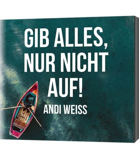 "Das neue Album von Andi Weiss steckt bis zum Rand voll mit guter Musik. Sage und schreibe 18 neue deutschsprachige Ermutigungslieder - und die bislang aufwendigste Produktion des Songpoeten. Mit dem Albumtitel ""Gib alles, nur nicht auf!"" macht Andi Weiss sein Herzensanliegen zur Herzensbotschaft. Jeder Satz, jede Note ruft dem Zuhörer zu: ""Du bist größer als deine Angst"" und ""Es ist ein Glück, dass es dich gibt."" Damit schafft er ein Bewusstsein für die eigenen Stärken und schenkt Mut zum Leben. In der ihm eigenen sympathischen Art, laden seine Songs zum ""In sich hineinfühlen"" ein - aber auch zum ""Glauben, der Berge versetzt"". Neben Mutmachsongs begegnen dem Zuhörer Themen wie Abschied, Versöhnung und Leben mit Ewigkeitsperspektive. Wunderbare Künstler wie Dania König, Johannes Falk, der Südtiroler Singer-Songwriter Dominik Plangger, Simon Kosse und Andis Ehefrau Martina haben einen Gastauftritt. Seine bisher aufwendigste Produktion wurde neben der klassischen Bandbesetzung mit Geige, Cello, Klarinette, Akkordeon und ammondorgel eingespielt. Hoher Gänsehautfaktor inklusive! Stimmen zum Produkt „Meine neue Platte soll ermutigen und stärken. Ich möchte Menschen daran erinnern, dass sie wertvoll und lebensfähig sind - von Gott eliebt und begleitet. Und sie darauf aufmerksam machen, was sie in ihrem Leben schon geschafft haben.""“ Andi Weiss" ...