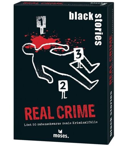 "Sie sind schwarz, rätselhaft und durch und durch böse: black stories - Das ist DIE Kultreihe bei moses. und das schon seit über 10 Jahren! In den morbiden, gruseligen, erschreckenden und zum Teil unterhaltsamen Rätseln geht es um den Tod und Unfälle, die nicht grauenhafter sein können. Wie starb der Nackte am Berghang und warum hatte er ein Streichholz in der Hand? Warum freuen sich drei Einarmige über ein Paket mit einem abgetrennten Arm? Weshalb aß die Familie die Großmutter löffelweise auf? Durch Raten soll genau die Geschichte dahinter herausgefunden werden. Nicht immer ganz so einfach… 50 brandneue und rabenschwarze Rätsel-Geschichten lassen dir das Blut in den Adern gefrieren. Und das Unheimlichste an dieser REAL CRIME EDITION: Die Stories sind real. Sie sind wirklich passiert, exakt wie beschrieben, bis auf den letzten Blutstropfen. Ob mörderisches Verbrechen, tragischer Unglücks- oder makabrer Todesfall: Geschichten, die das Leben schrieb! Wenn dir jetzt noch nicht die Haare zu Berge stehen, dann löse das Rätsel. Durch Fragen, Raten und Tüfteln wird der Tathergang Stück für Stück rekonstruiert. Ein wirklich gruseliger Rate-Spaß! 1991 startet der moses. Verlag GmbH als kleiner Kinderbuchverlag. Im Laufe der Jahre entwickelte moses. Ihre Klassiker: Die Becherlupe, die rabenschwarzen ""black stories"" sowie ihren umfangreichen Produktkatalog " ...