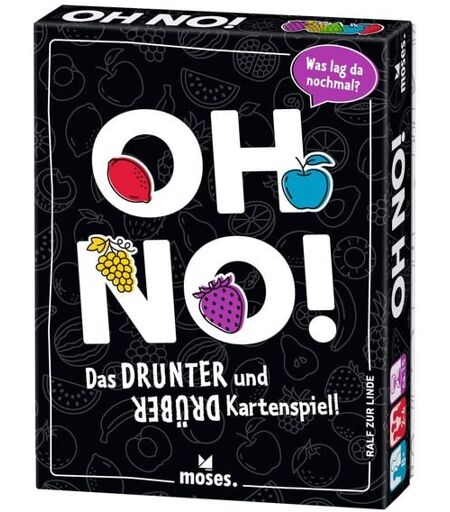 "Oh no! Das verrückt-verdrehte Kartenspiel Eine echte Herausforderung für alle, denen Mau Mau zu wenig ist! Der Spieleklassiker bekommt nämlich einen neuen Twist: Hier wird nicht die oberste, sondern die vorletzte Karte bedient! Zum Sieg führen also nur höchste Konzentration und mutiges Bluffen. Durch zusätzliche Sonderaktionen wird das Spiel noch verwirrender - und so auch noch spannender. Ein Muss für den nächsten Spieleabend! So wird's gespielt: + Reihum legen alle Karten nach den bekannten Mau-Mau-Regeln ab (Farbe oder Obstsorte passend spielen). + Der Twist: Es wird nicht die oberste Karte, sondern die Karte darunter ""bedient"". Alle müssen also gut aufpassen, was verdeckt wird. + Wer denkt, jemand hat falsch abgespielt, darf anzweifeln. Inhalt: 60 Karten, eine Spielanleitung" ...