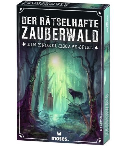 "Mit den Escape-Games aus dem moses. Verlag bringen Sie Rätselspaß in die eigenen vier Wände. Die Abkürzung durch den Wald erweist sich als großer Fehler: Die Spieler*innen finden sich plötzlich auf einer magischen Lichtung wieder, inmitten von merkwürdigen Zauberwesen. Um wieder herauszukommen, müssen sie den Waldbewohnern verschlüsselte Hinweise entlocken. Finden sie rechtzeitig den Ausgang? Eine spannende Rätsel-Reise durch den Zauberwald beginnt! Dieses handliche Escape-Game ist ein reines Kartenspiel und eignet sich perfekt für Einsteiger*innen, denn die auf den ersten Blick kleine Schachtel bietet riesengroßen Rätselspaß. Insgesamt 17 Rätsel müssen gelöst werden, bevor das letzte große Rätsel geknackt und der Ausgang aus dem Zauberwald gefunden werden kann. Anders als bei anderen Escape-Spielen bleibt das Spielmaterial hier übrigens unversehrt und ist so immer wieder verwendbar. Inhalt: 5 Transparentpapiere, 88 Spielkarten, 1 Spielanleitung 1991 startet der moses. Verlag GmbH als kleiner Kinderbuchverlag. Im Laufe der Jahre entwickelte moses. Ihre Klassiker: Die Becherlupe, die rabenschwarzen ""black stories"" sowie ihren umfangreichen Produktkatalog " ...