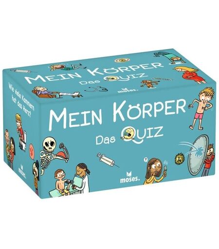 "Warum werden unsere Haare grau? Aus wie vielen Kammern besteht das Herz? Wodurch wird Karies verursacht? Unser Körper ist ein Wunderwerk! Mit „Mein Körper – Das Quiz“ zum Staunen und Lachen können kleine und große Quizmaster unter Beweis stellen, wie gut sie sich mit dem menschlichen Körper auskennen. In dem Quiz-Spiel findet sich alles, was Kinder über unsere Organe, Knochen und Zellen sowie die spannenden Abläufe des menschlichen Lebens wissen wollen. Und dazu gibt es natürlich jede Menge unglaubliche Fakten, interessantes Angeberwissen und verrückte Geschichten. Die liebevoll gestalteten Illustrationen geben zudem einen spannenden Einblick in unser Inneres. 1991 startet der moses. Verlag GmbH als kleiner Kinderbuchverlag. Im Laufe der Jahre entwickelte moses. Ihre Klassiker: Die Becherlupe, die rabenschwarzen ""black stories"" sowie ihren umfangreichen Produktkatalog " ...