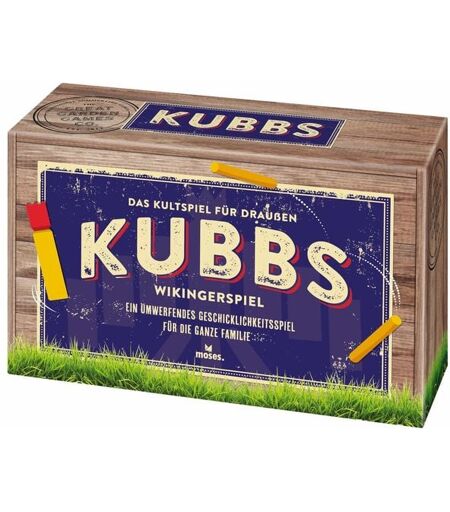 "Das original Wikingerspiel für draußen! Längst ist das Kultspiel aus Schweden auch in Deutschland kein Geheimtipp mehr. Zwei Teams stehen sich gegenüber und versuchen abwechselnd, die gegnerischen Klötzchen (= Kubbs) mit Wurfstäben umzuwerfen. Wer das als Erster schafft, darf den König ins Visier nehmen und das Spiel für sich entscheiden. Ein umwerfendes Geschicklichkeitsspiel für die ganze Familie! Inhalt: 1 König, 10 Kubbs, 6 Wurfstäbe und 4 Eckpfosten aus Holz Lieferung nur nach Deutschland und Österreich 1991 startet der moses. Verlag GmbH als kleiner Kinderbuchverlag. Im Laufe der Jahre entwickelte moses. Ihre Klassiker: Die Becherlupe, die rabenschwarzen ""black stories"" sowie ihren umfangreichen Produktkatalog " ...