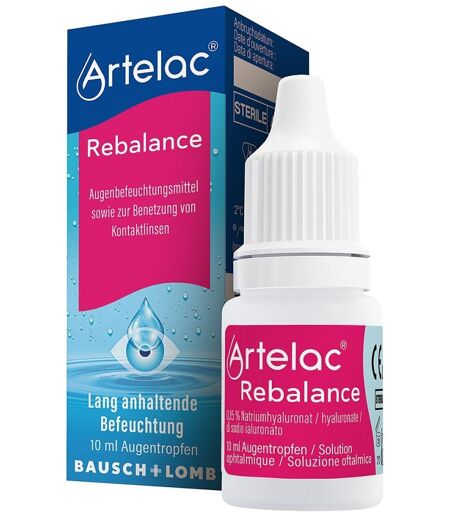 Anwendungsgebiet von Artelac Rebalance Augentropfen für gereizte trockene AugenArtelac Rebalance Augentropfen für gereizte trockene Augen dienen der Befeuchtung trockener, brennender und schmerzender Augen. Innere Faktoren können zu einer nachlassenden Tränenproduktion führen: Alter, Hormonumstellungen während der Schwangerschaft und Wechseljahre oder Nervenlähmungen infolge eines Schlaganfalls. Artelac Rebalance Augentropfen für gereizte trockene Augen wirken den unangenehmen Symptomen chronischer Tränenfunktionsstörungen nachhaltig entgegen.