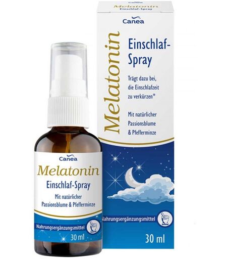 Anwendungsgebiet von Melatonin Einschlaf-SprayMelatonin Einschlaf-Spray ist ein Nahrungsergänzungsmittel mit Melatonin, Passionsblumenextrakt und Pfefferminze. Melatonin trägt dazu bei, die Einschlafzeit zu verkürzen. Die positive Wirkung stellt sich ein, wenn kurz vor dem Schlafengehen 1 mg Melatonin aufgenommen wird.