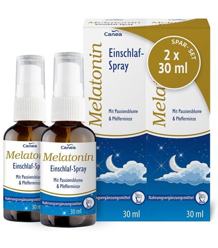 Anwendungsgebiet von Melatonin Einschlafspray Spar-SetMelatonin Einschlafspray Spar-Set ist ein Nahrungsergänzungsmittel mit Melatonin, Passionsblumenextrakt und Pfefferminze. Melatonin trägt dazu bei, die Einschlafzeit zu verkürzen. Die positive Wirkung stellt sich ein, wenn kurz vor dem Schlafengehen 1 mg Melatonin aufgenommen wird.
